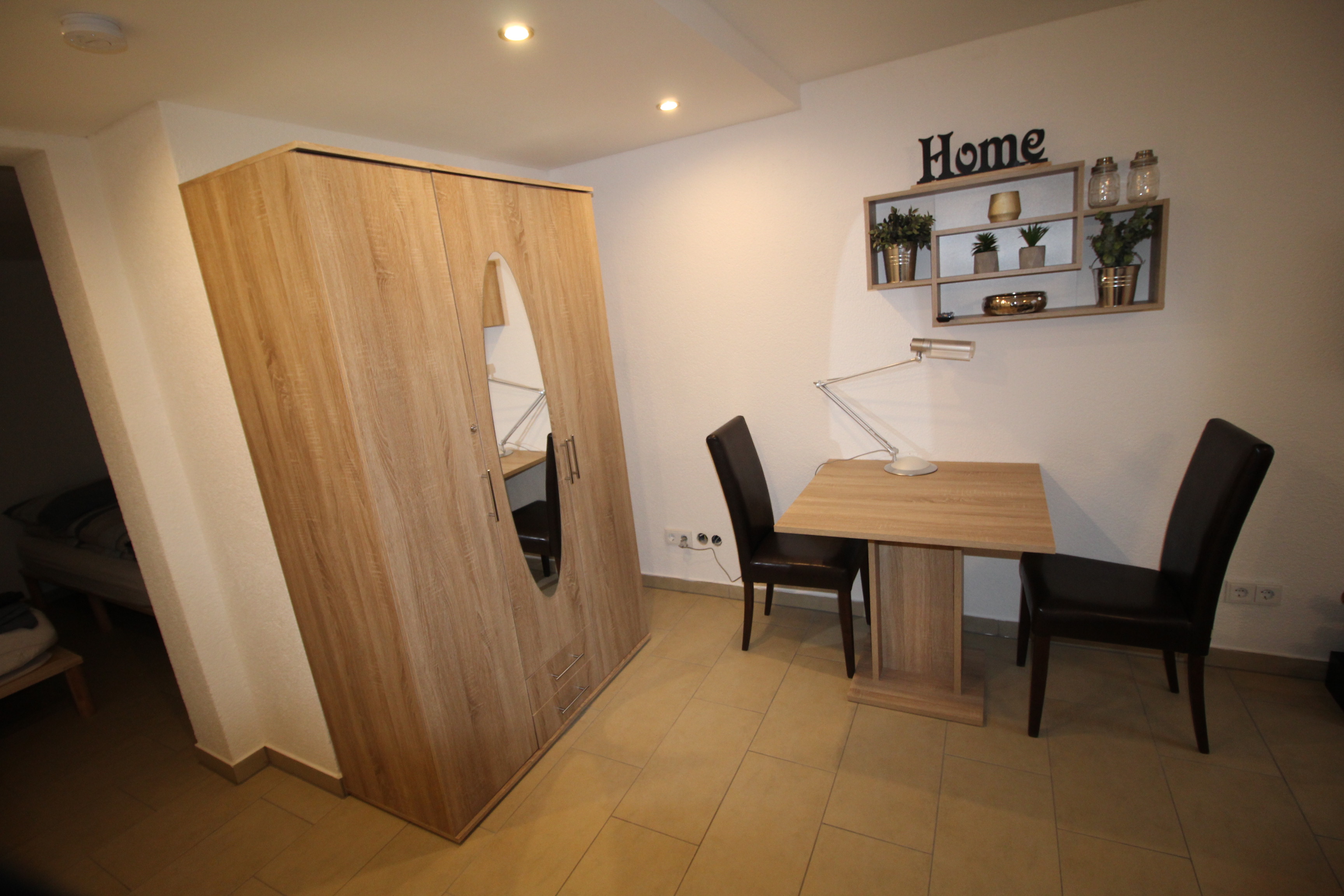 Das Mikro-Apartment im Souterrain mit eigenem Hauseingang! - verfügt über einen Flur, einen Wohnbereich mit separaten Schlafbereich (2 Einzelbetten), funktionalen separaten Küchenbereich und ein Dusch-Bad.